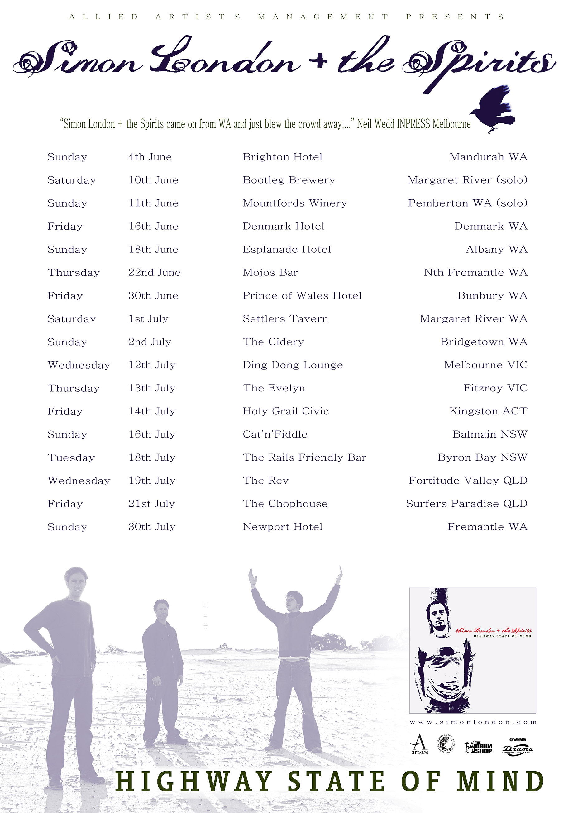 Since beginning in 2003, the Spirits have included: Matt Morcombe – drums Tim Keady – bass, vocals Chris Edmondson – guitars, vocals Tim Stacey – drums Jon ‘Clem’ Clements – hammond, rhodes, bass